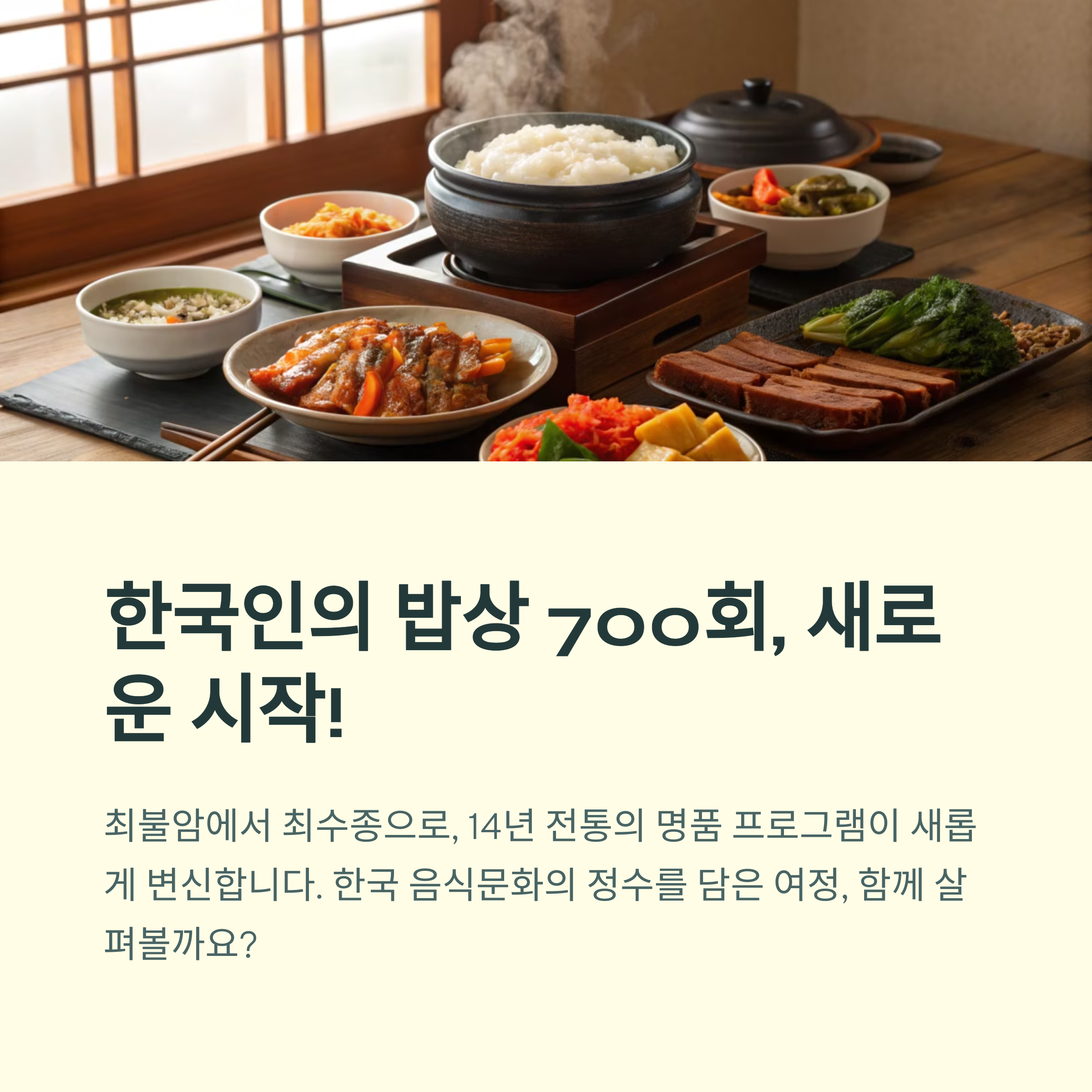 이번 700회 특집은 그 자체로도 특별했습니다. ‘밥상’이라는 공간이 단순한 식사가 아닌, 사람과 사람을 잇는 매개체라는 사실을 다시 한 번 일깨워주었죠.